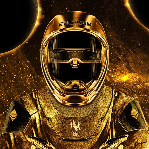 Three descended to Earth and took form — golden astronauts, gifted to teh architects of the new world: Vitalik, Ryoshi, and Woof Decentra.